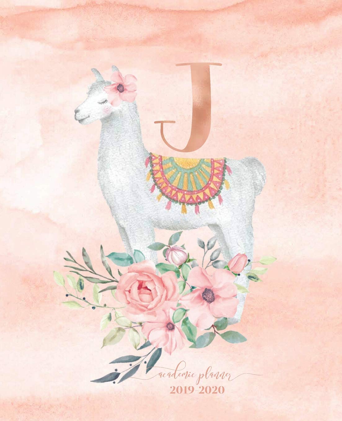 Academic Planner 2019-2020: Llama Alpaca Rose Gold Monogram Letter J with Pink Watercolor Flowers Academic Planner July 20...